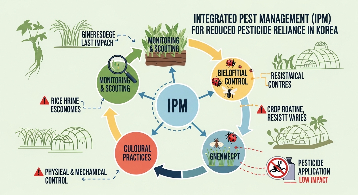 살충제 의존도를 줄이는 통합적 해충관리(IPM) 개념도