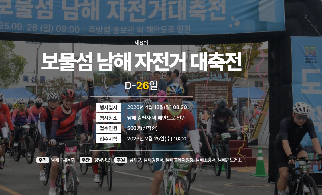 - 접수: namhaebike.kr, 선착순 500명, 3월 31일까지